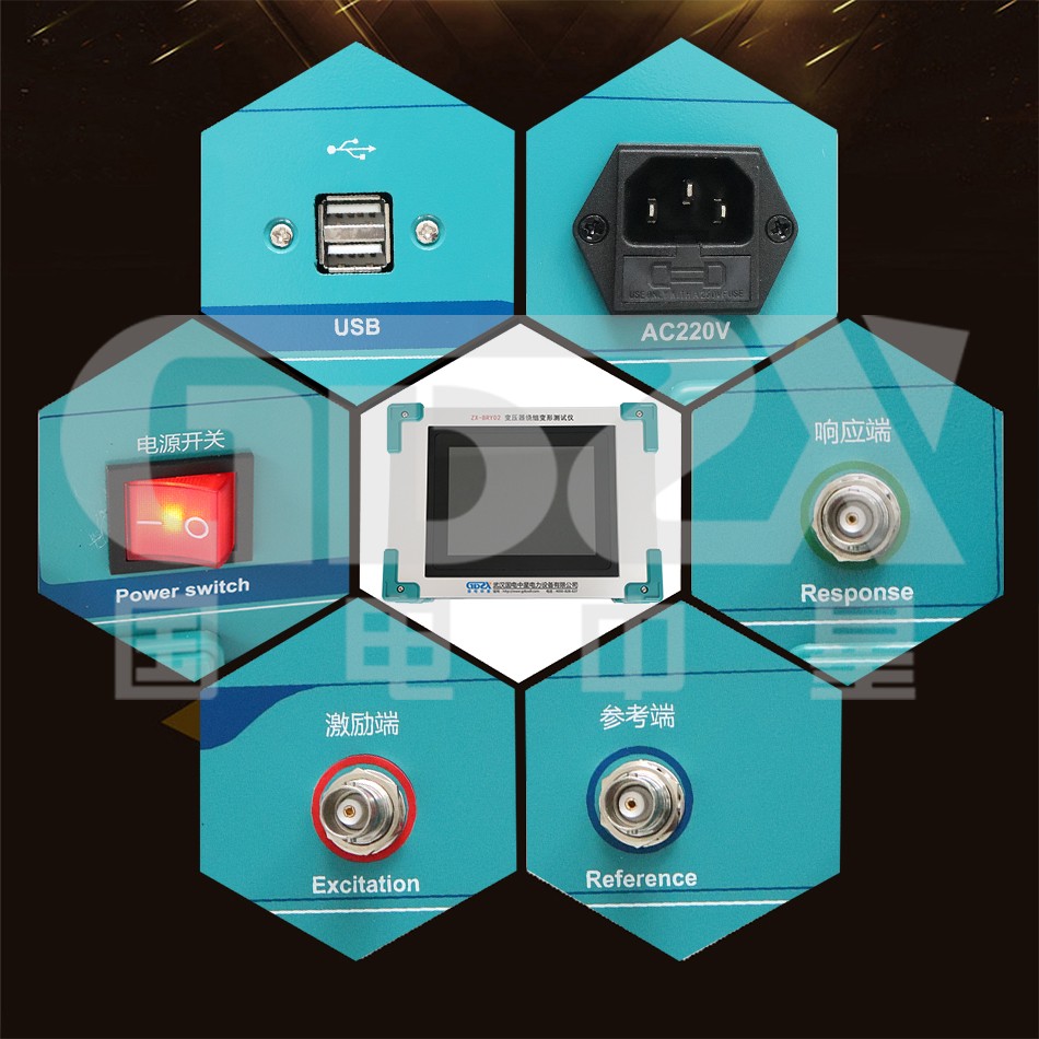 4. 硬件機(jī)芯采用DDS專用數(shù)字高速掃頻技術(shù)(美國),通過測試可以準(zhǔn)確診斷出繞組發(fā)生扭曲、鼓包、移位、傾斜、匝間短路變形及相間接觸短路等故障。
