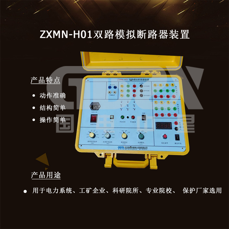 ZXMN-H01 模擬斷路器外形結(jié)構(gòu)為便攜式,適用于現(xiàn)場試驗(yàn)使 用。